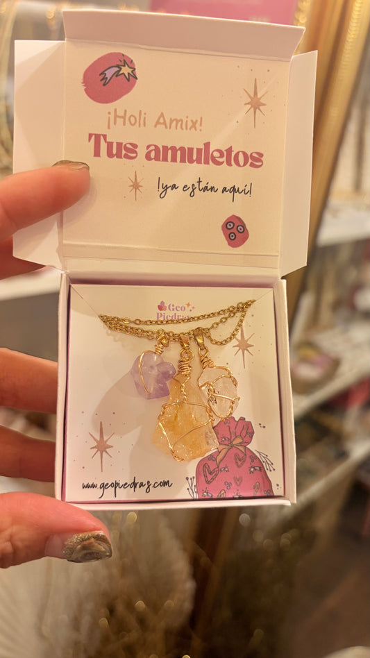 Kit Mini Amuletos ✨🌙Baby Witch🌙✨ • Obsidiana• Grante• Piedra sol• Amatista•