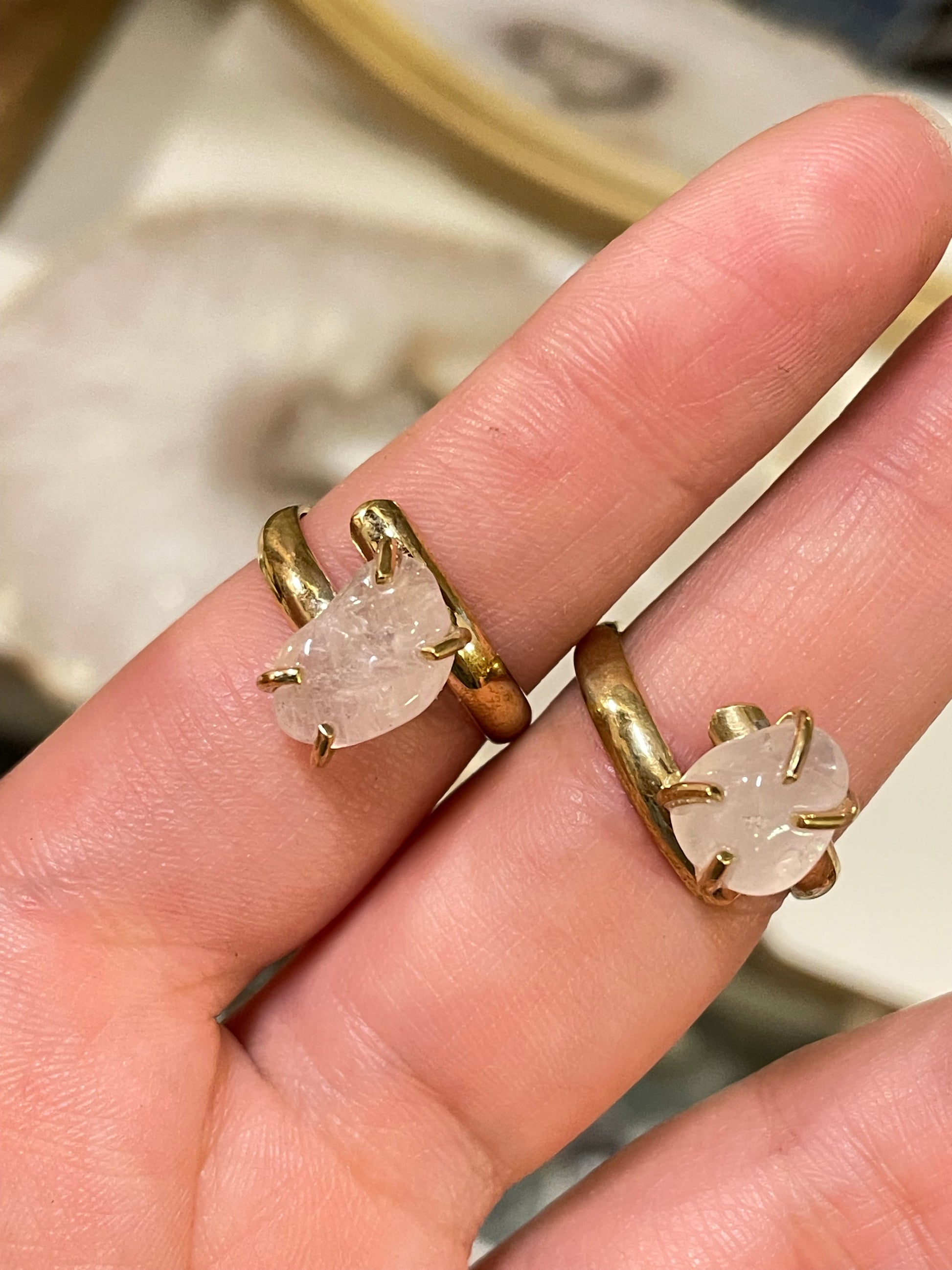 Anillo Cuarzo Rosa Garras Dorado