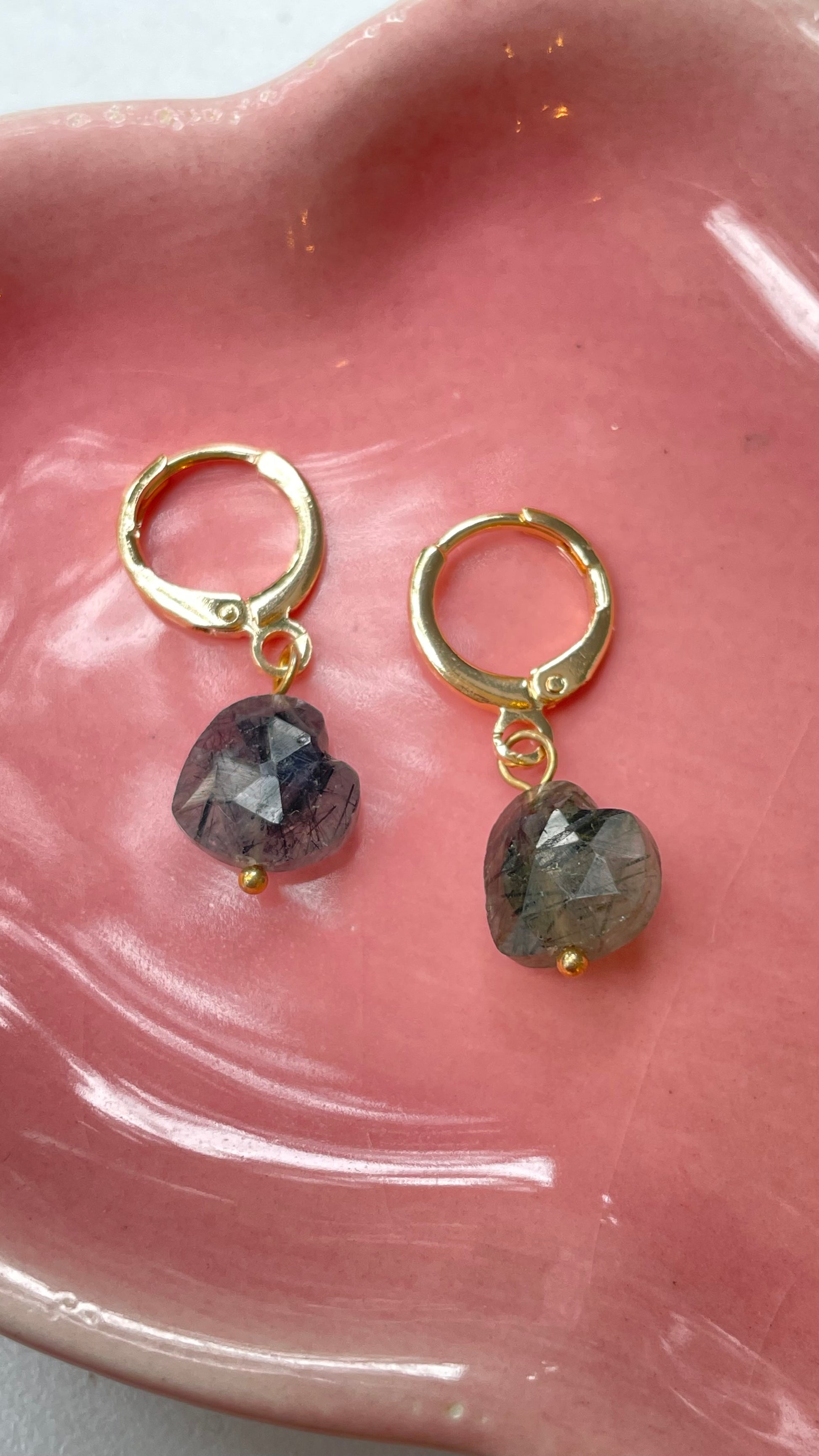 Arracadas Corazón de Cuarzo Turmalinado