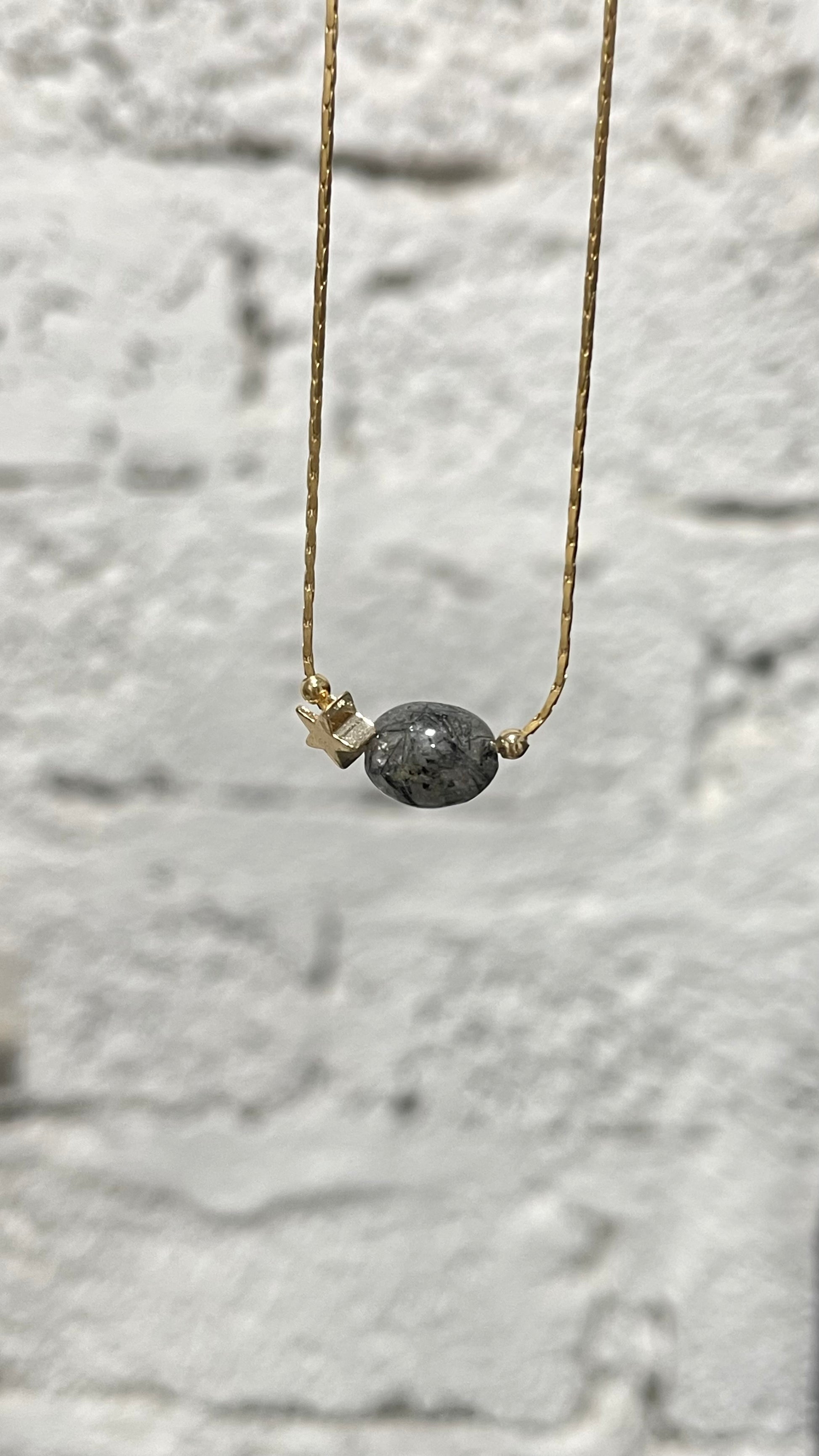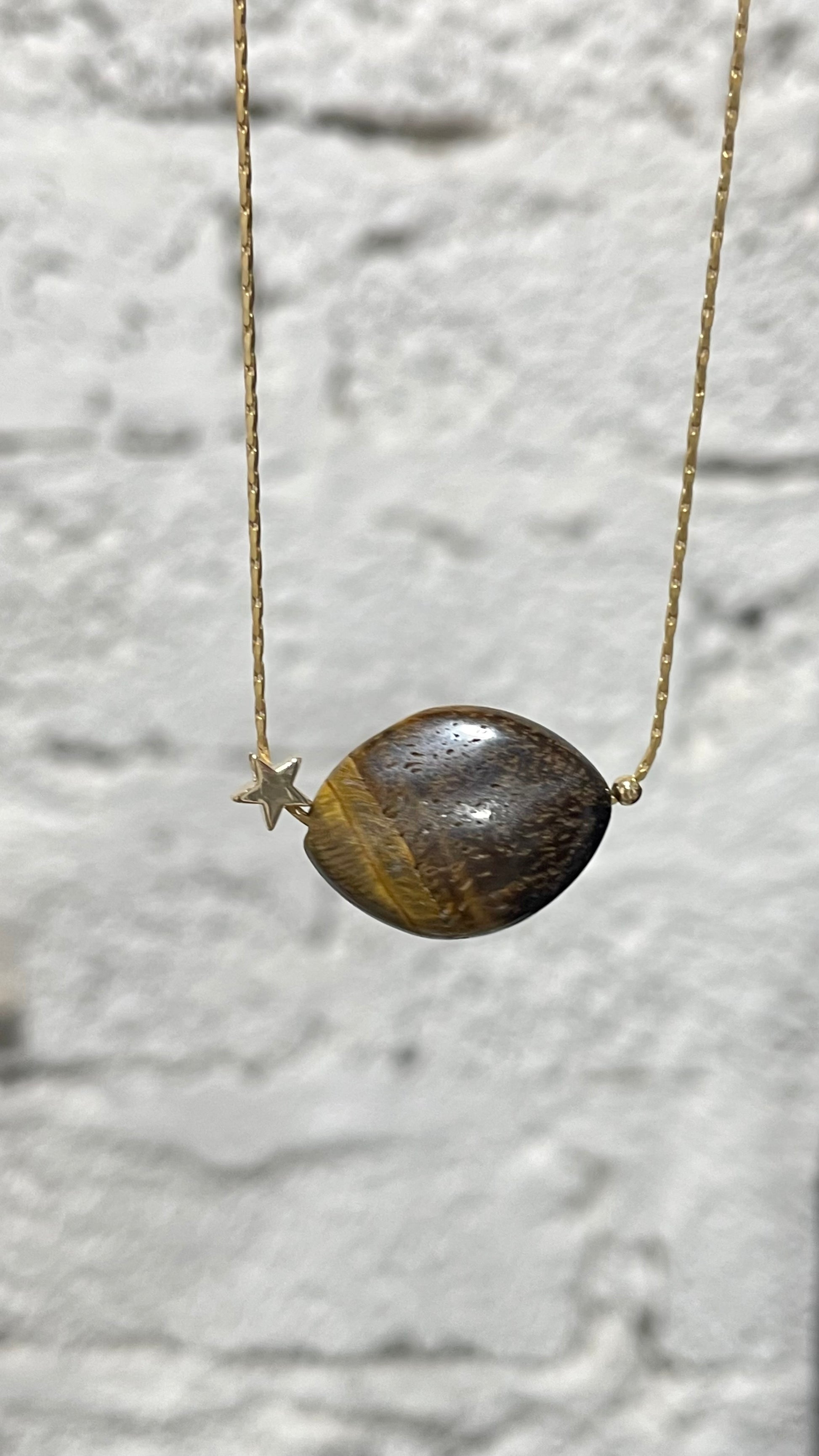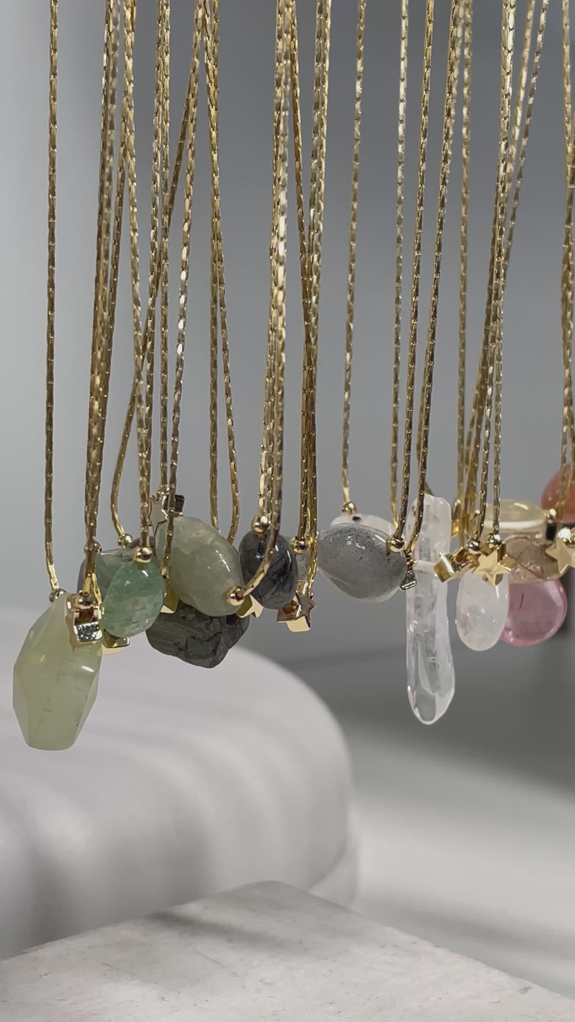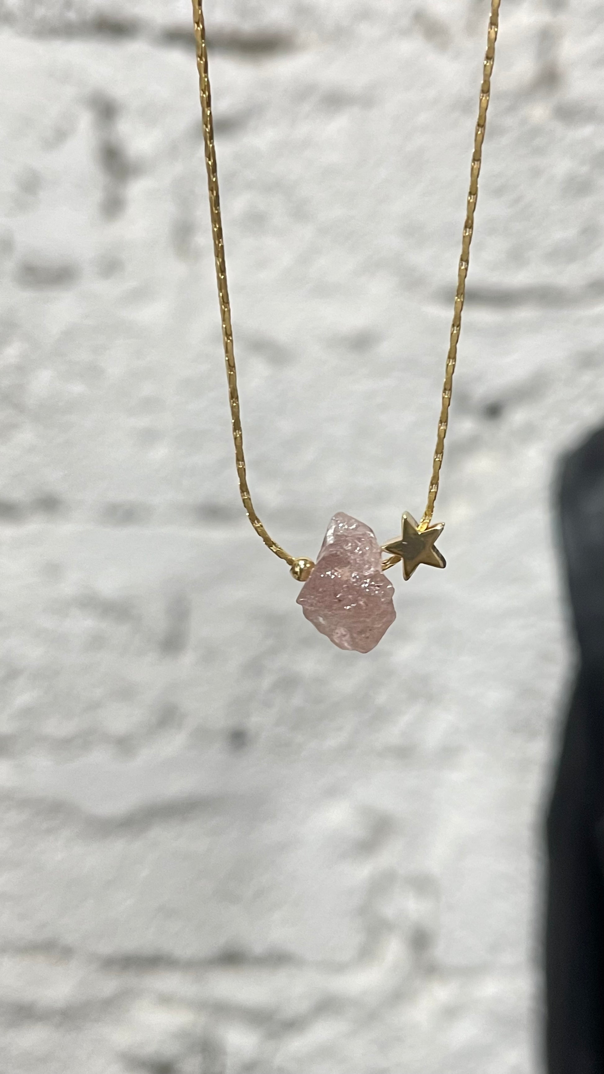 Collar básico de 45 cm con un mineral en brutos y estrellita de complemento montado en una cadena de chapa de oro de 10k. Pizas únicas se van renovando según existencia