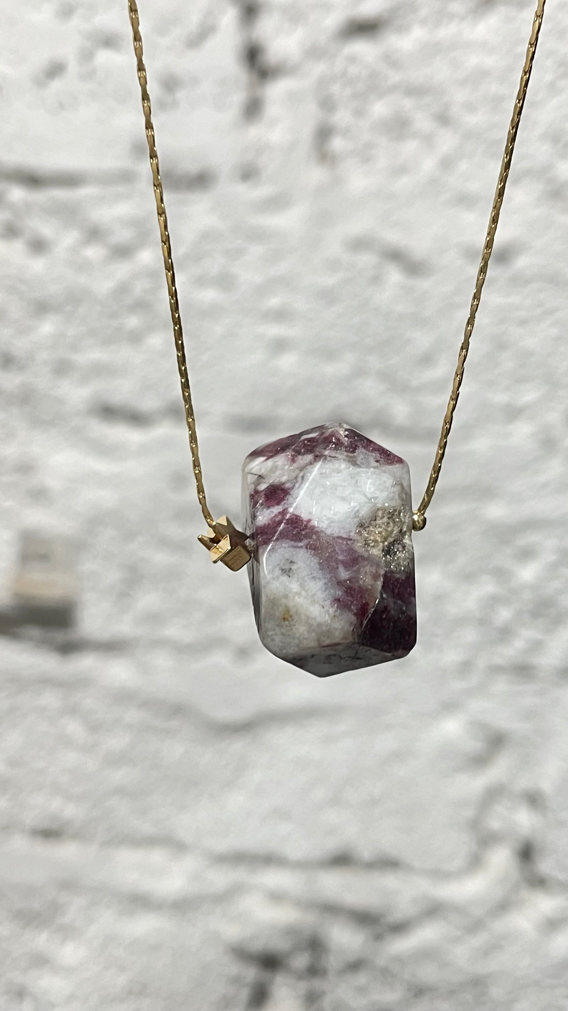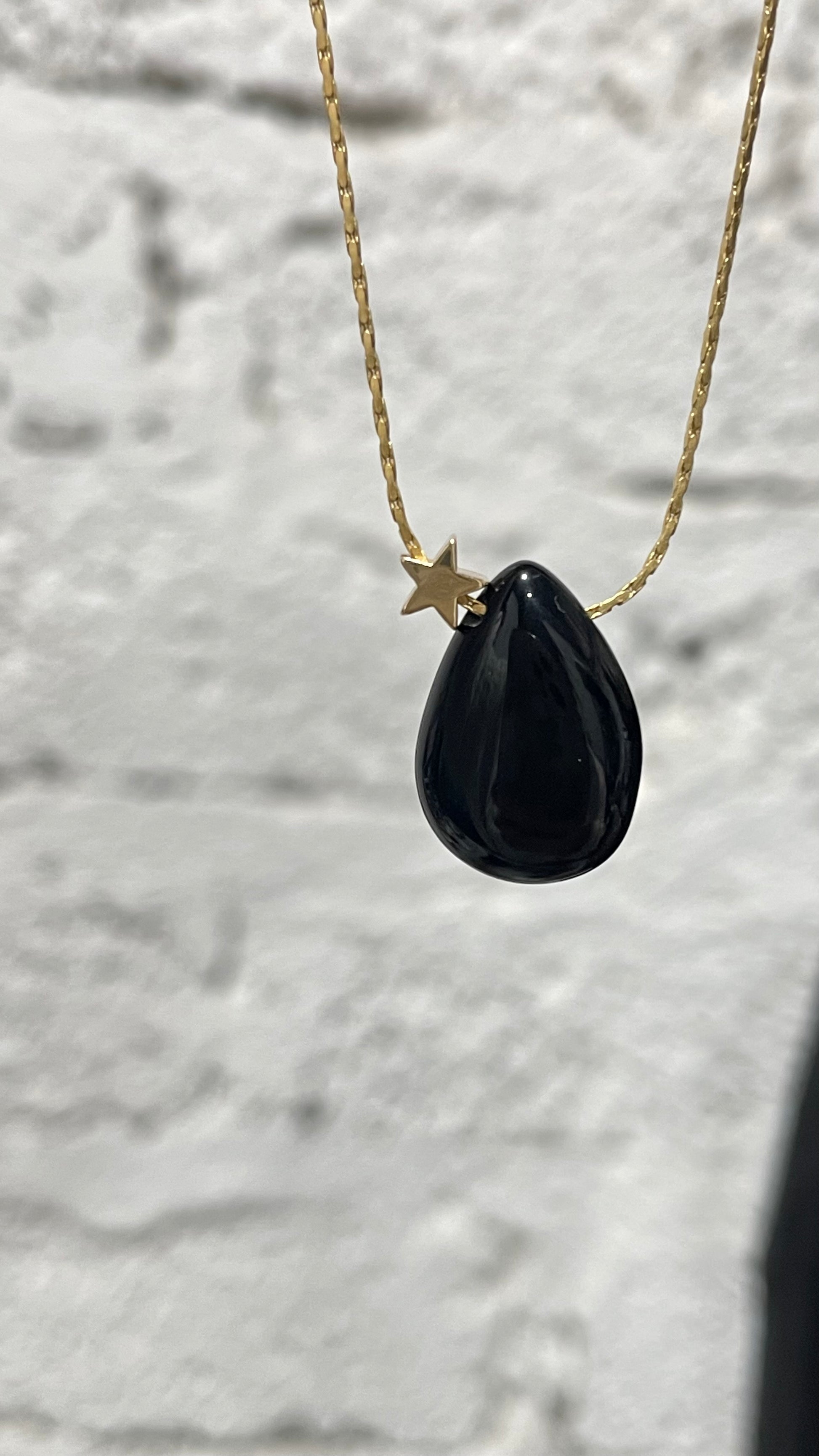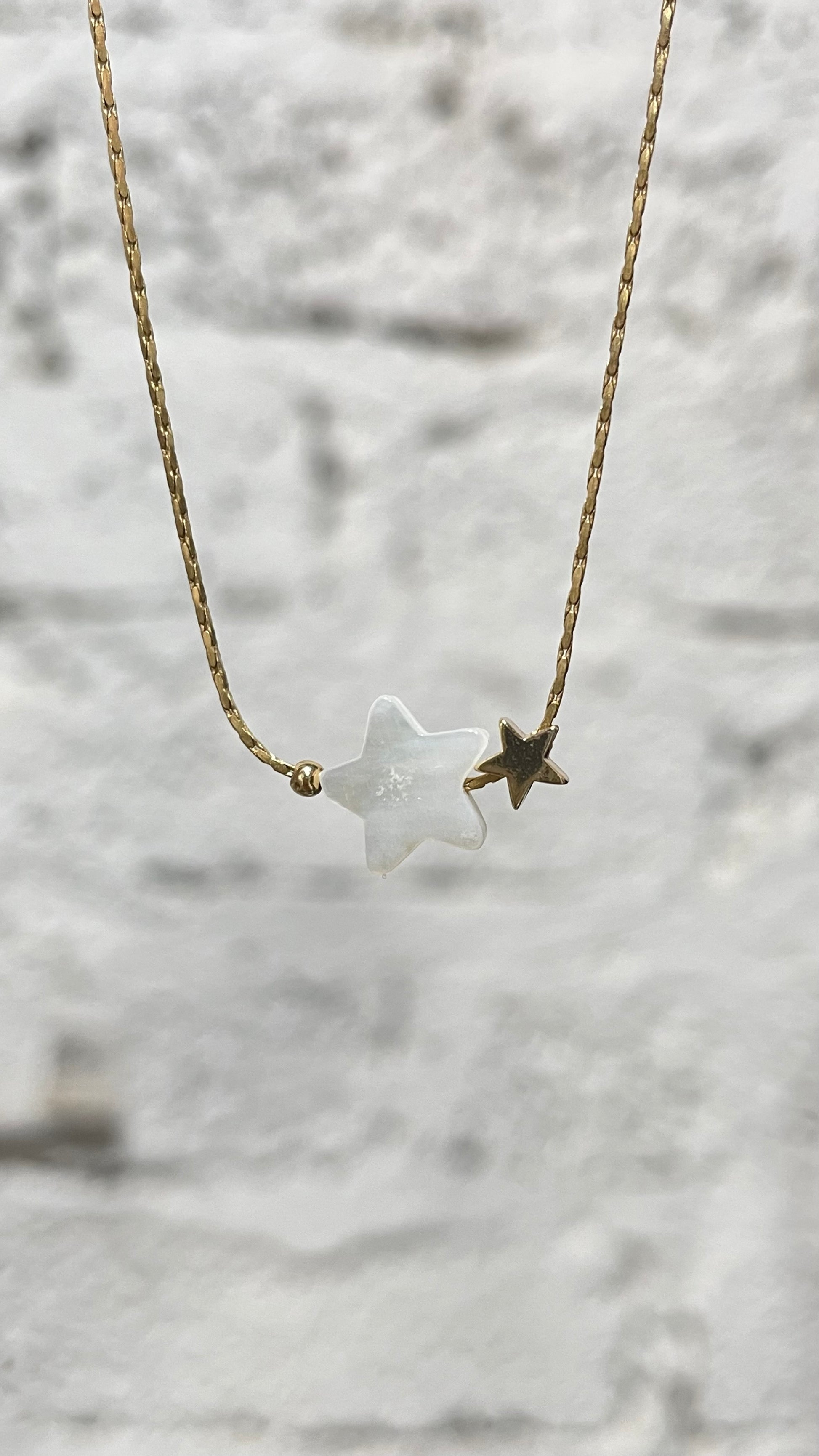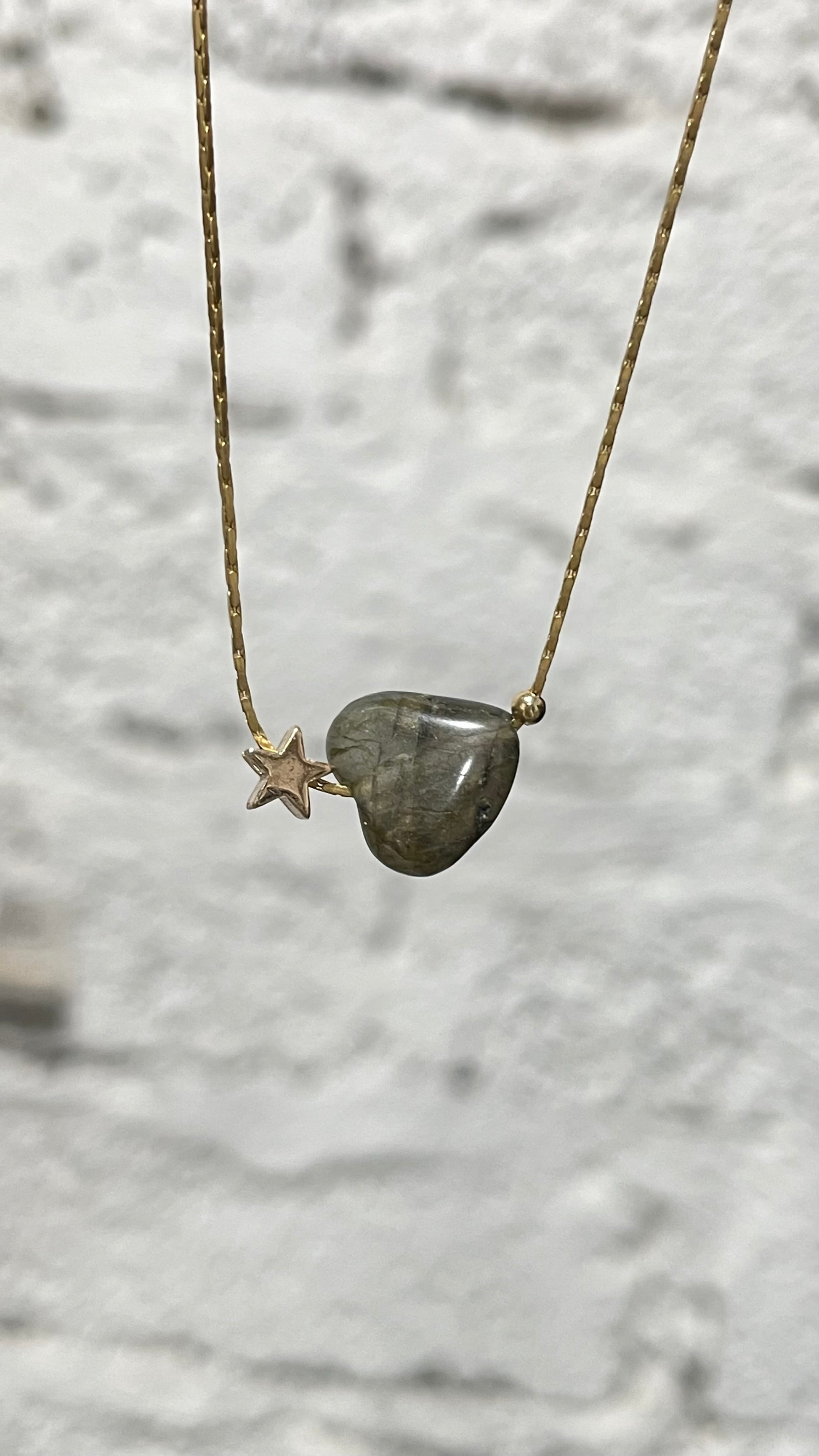 Collar básico de 45 cm con un mineral en brutos y estrellita de complemento montado en una cadena de chapa de oro de 10k. Pizas únicas se van renovando según existencia