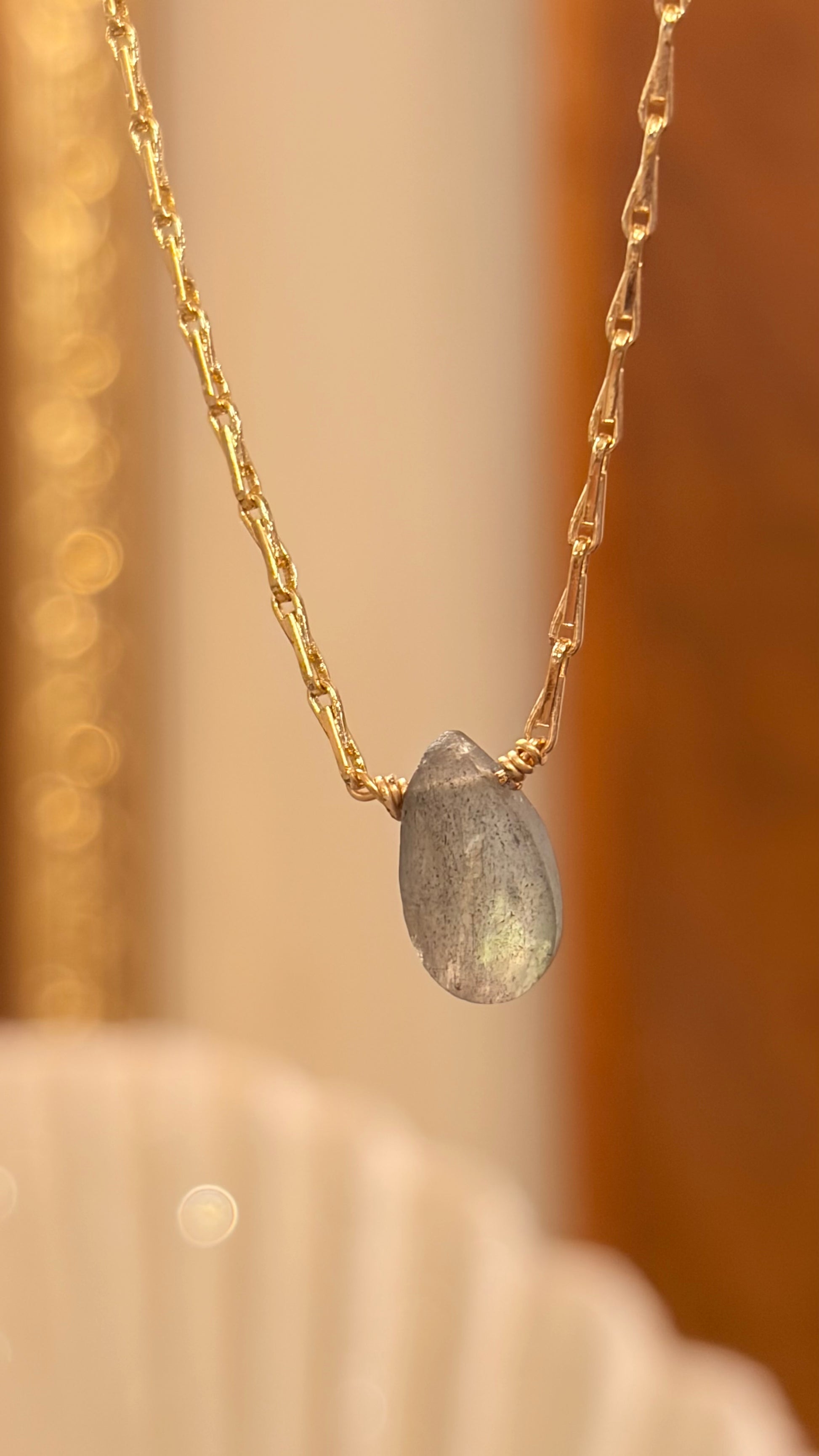 Cada pieza está elaborada en material chapado en oro de 10K y acompañada de piedras preciosas y semipreciosas cuidadosamente seleccionadas. La cadena se vende por gramo, garantizando un material de buena calidad y transparencia en el precio.