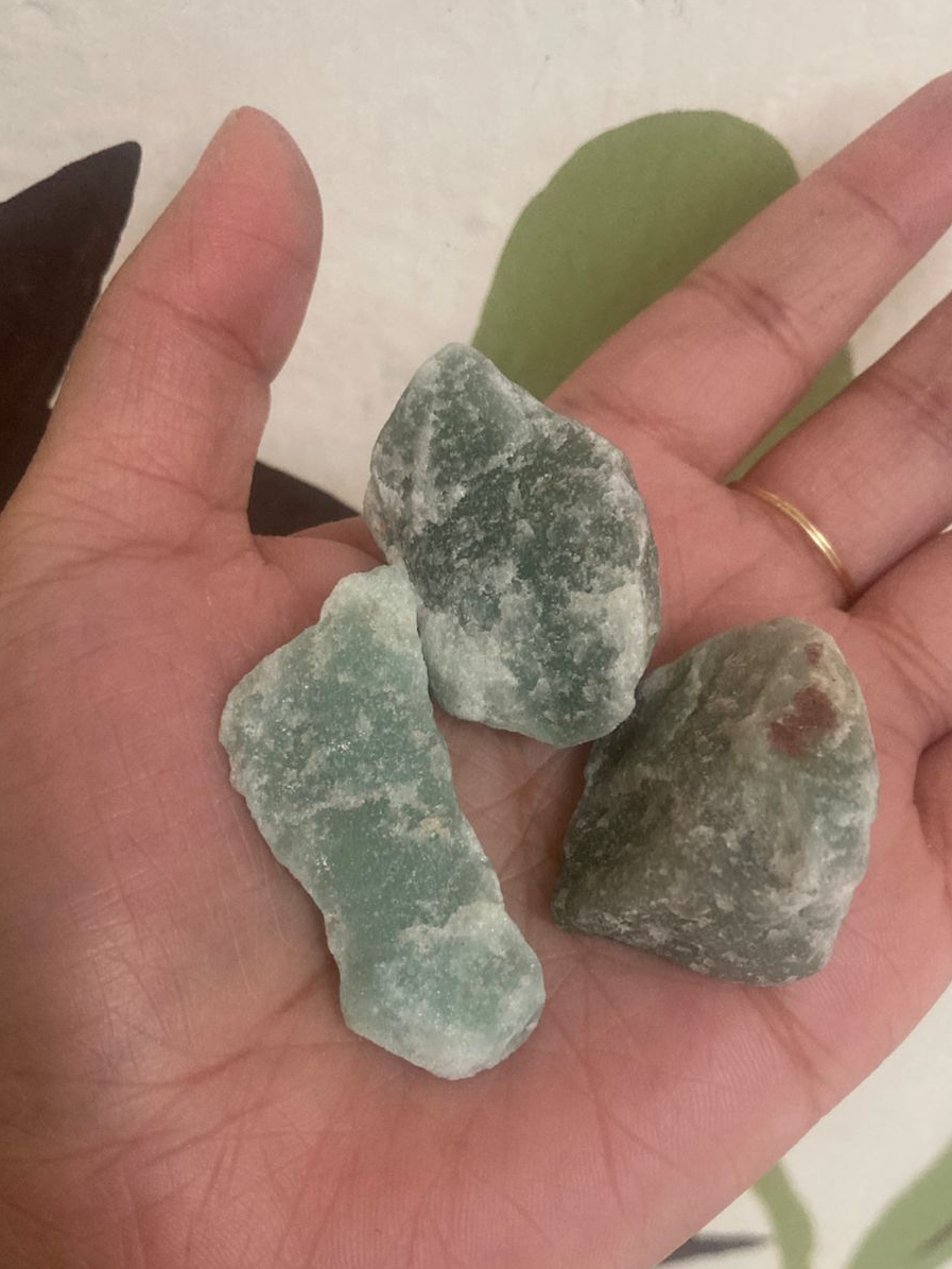 Pieza pequeña cuarzo verde en bruto. Pieza de mesa, colección o altar. Todas pesan entre 30 gr- 50 gr y miden alrededor de 3cm a 5cm. *En minerales en bruto las piezas varían en tamaño, forma peso ya que ningún mineral es exactamente igual a otro.