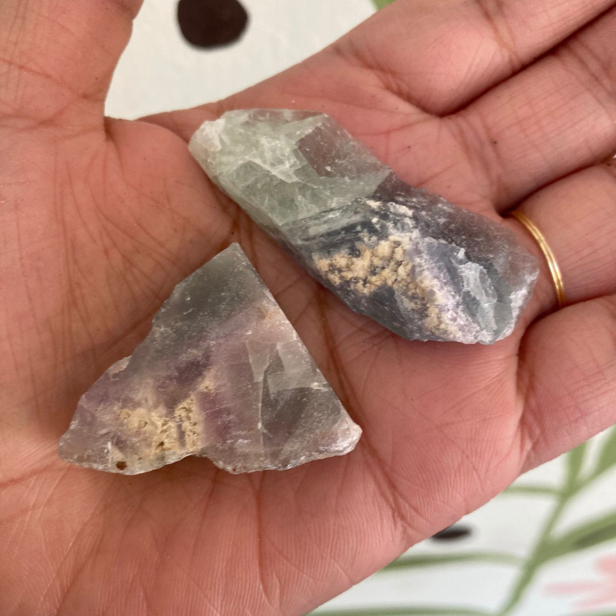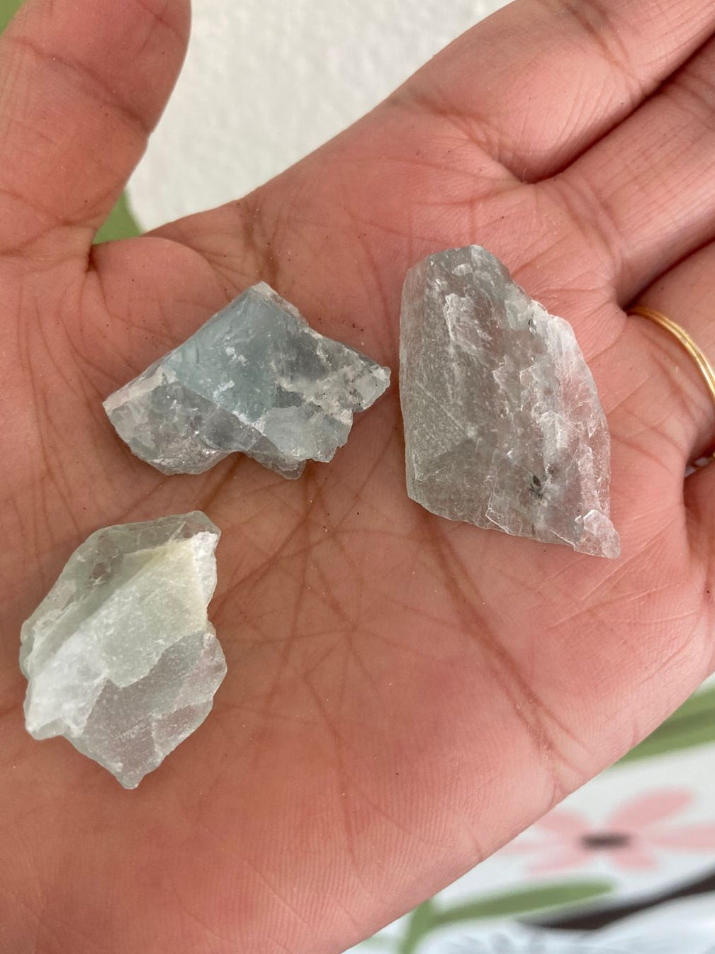 Pieza pequeña fluorita en bruto. Pieza de mesa, colección o altar. Todas pesan entre 30 gr- 50 gr y miden alrededor de 3cm a 5cm. *En minerales en bruto las piezas varían en tamaño, forma peso ya que ningún mineral es exactamente igual a otro.