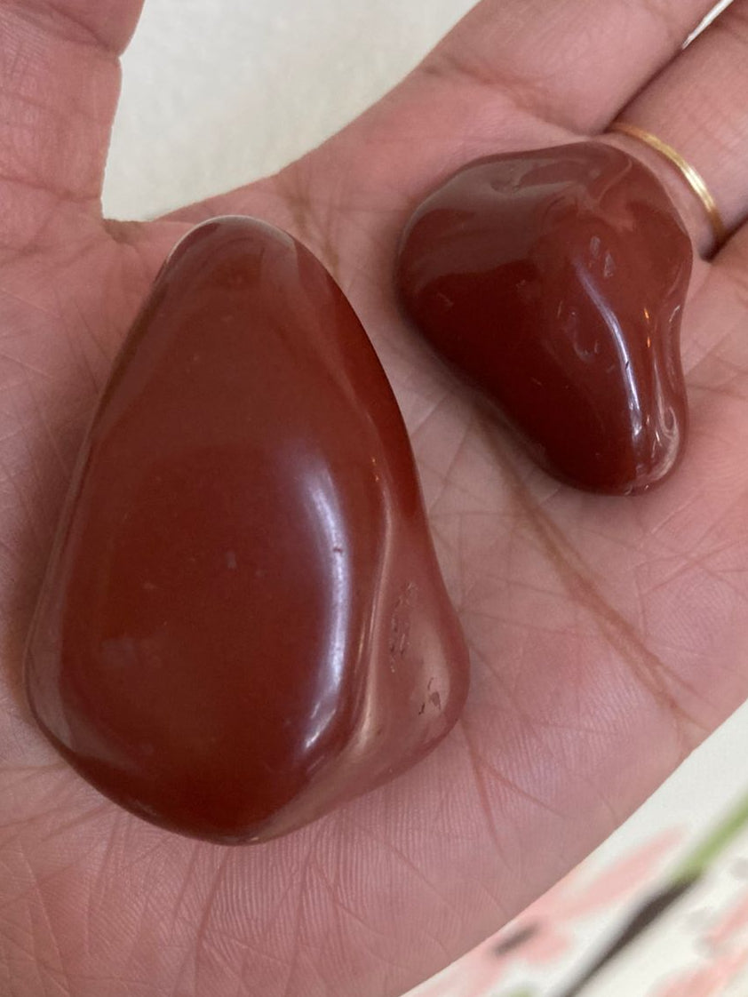 Pieza pequeña jaspe rojo boleado. Pieza de mesa, colección o altar. Todas pesan entre 30 gr- 50 gr y miden alrededor de 3cm a 5cm. *En minerales en bruto las piezas varían en tamaño, forma peso ya que ningún mineral es exactamente igual a otro.