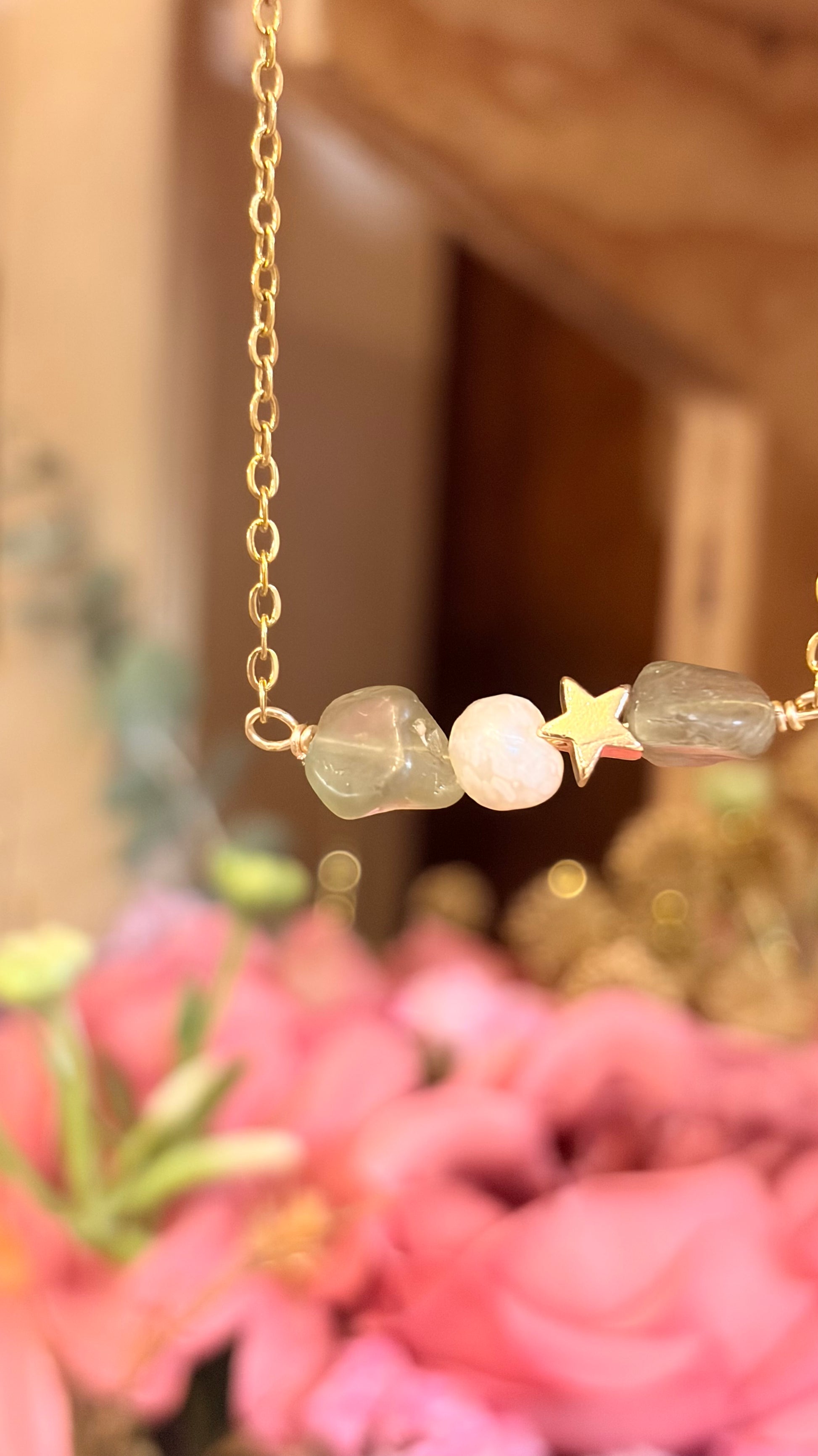 Collar de acero inoxidable con cuarzo nugget y perla mini con separador de estrella.